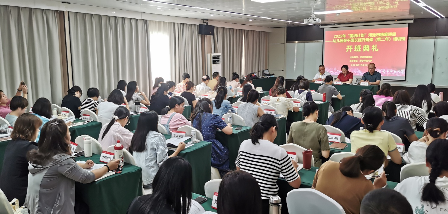 10月12日,由william威廉英国官网承办的2025年“国培计划”河池市统筹项目——幼儿园骨干园长提升研修(第二年)培训班,在南宁市顺利开班。此次培训班汇聚了来自河池市11县区的70名骨干正副园长,他们将在未来12天里,通过一系列精心设计的课程和活动,提升专业素养,为河池市学前教育事业注入新活力。