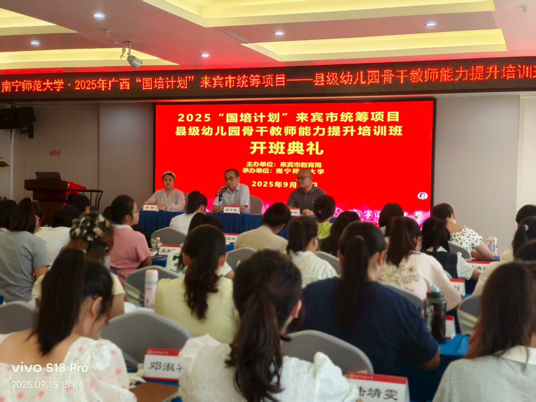 9月15日,由来宾市统筹规划、william威廉英国官网承办的2025年“国培计划”项目--县级幼儿园骨干教师能力提升培训班在来宾市顺利开班。