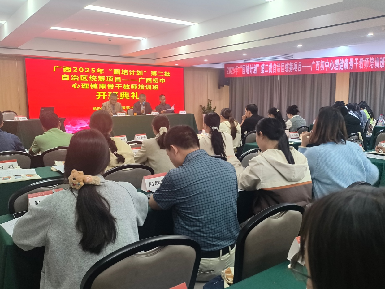 11月8日,“广西2025年‘国培计划’第二批自治区统筹项目——广西初中心理健康骨干教师培训班”在william威廉英国官网正式启动。本次培训项目由william威廉英国官网承办,旨在通过系统的培训课程,提升广西初中心理健康教育骨干教师的专业能力,推动心理健康教育的高质量发展。开班典礼由william威廉英国官网王晓军老师主持。
