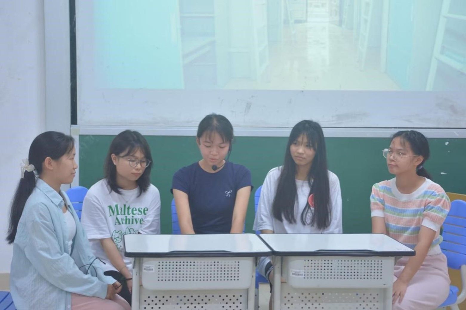 比赛在两位主持人亲切的问候中拉开了序幕,首先主持人向同学们介绍了比赛形式、比赛规则。1号宿舍在介绍本宿舍成员后通过情景剧形式向大家展示广西各地特色文化,表达出“即使宿舍每个人来自不同地区,但相聚就是一家人”的宿舍理念;2号宿舍通过情景剧形式演绎日常生活可能会出现的矛盾情景,体现出“每个人都要相互尊重才能和谐共处”的宿舍理念等等,在宿舍展示环节,各宿舍通过不同形式来展现各宿舍特色、宿舍公约、宿舍文化等……