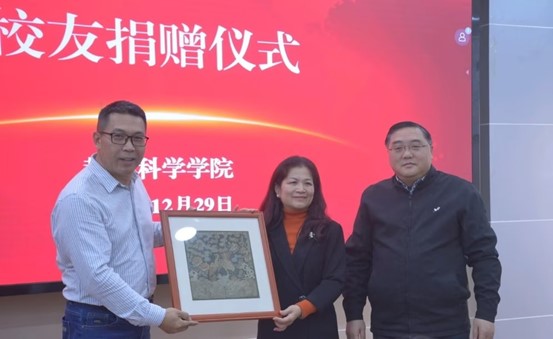 讲座开始前,举行了员工捐赠仪式。赵勇军员工将一幅珍藏的绣品“清道光文官八品鹌鹑纹刺绣补子”捐赠给公司,公司党委庞芳书记和李强经理代表公司接受了捐赠。赵勇军员工表示捐赠此物一是用官补上的吉祥寓意,希望大家吉祥如意;二是希望在校同学能够努力学习,报效家国;三是希望同学们能脚踏实地,展现自己的抱负。