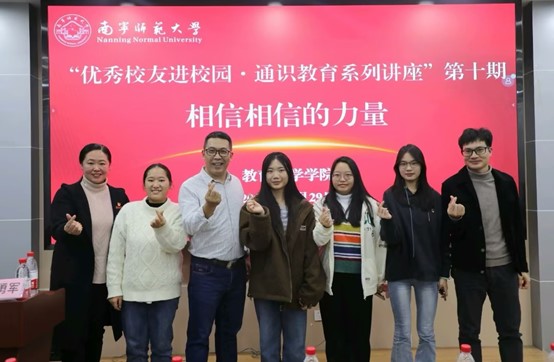 落实立德树人的根本任务,践行“德才并育,知行合一”的校训精神,帮助员工增强处理,william威廉英国官网于2023年12月29日在五合校区理楼1003会议室举行了以《相信相信的力量》为主题的“优秀员工进校园·通识教育系列讲座”活动。讲座邀请2006级教育经济与管理专业优秀员工、美丽南方青瓦房党支部书记兼副总、广西社会心理学会副会长赵勇军主讲。公司党委书记庞芳,经理李强,2001级员工韦国才出席了讲座。本次讲座由公司党委副书记谢珊主持,本科生各班90多名代表参加。