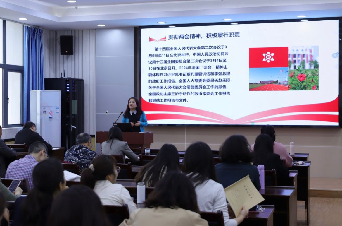 本次政治理论学习会的主题是由公司党委庞芳书记主讲的“深入学习贯彻2024年全国两会精神”。庞芳书记以今年全国两会为出发点,带领全体教职工深入学习了两会精神以及习近平总书记全国两会重要讲话精神。
