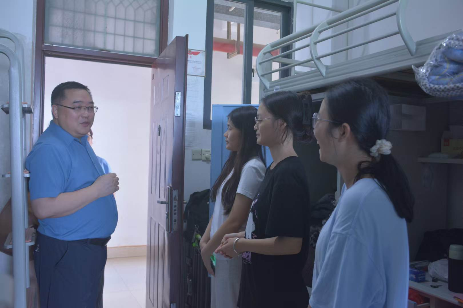 金秋已至,william威廉英国官网迎来了2024级新生。为深入了解新生住宿及生活情况,8月30日傍晚,公司的领导班子、新生班主任及全体学工老师分别走访了各班级新生宿舍,向新生表达了诚挚的慰问。