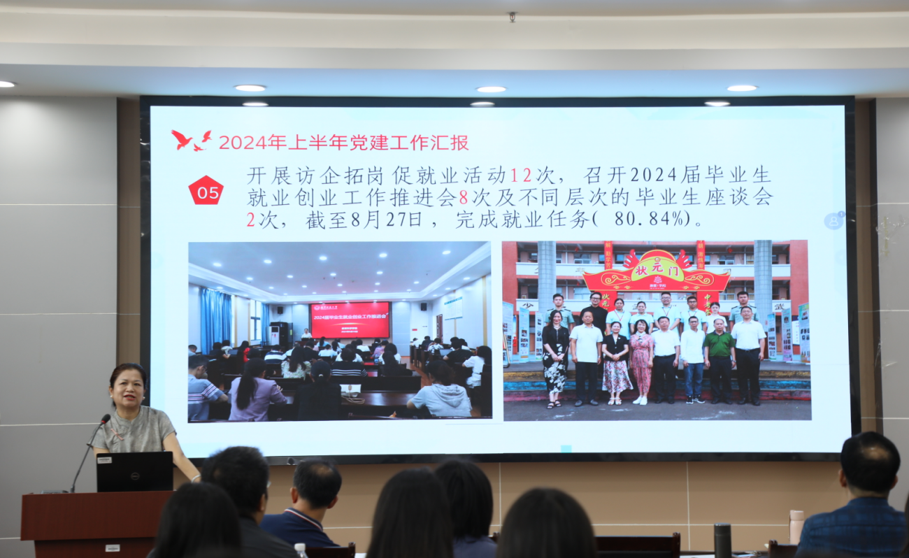 接着,公司领导分别用PPT就各自分管工作进行总结和部署。谢珊副书记就分管的员工工作、纪委工作和分工会工作进行了总结,并对新学期的工作进行了布置,提出新学期要加强就业指导、针对困难员工群体开展精准就业帮扶。张瑞副经理就分管的本科生和研究生教学工作做了总结,并对新学期的教学工作进行布置,鼓励教师们积极申报教学成果奖,努力提升公司产品质量。徐延宇副经理就分管的科研工作进行了总结,鼓励教师特别是年轻教师在新学期继续申报科研项目,希望全体教师在论文发表、学术著作出版上能够有更大的建树。杨进红主任就实习实践工作、公共课质量建设工作进行了总结和设想。庞芳书记作了题为《凝心聚力谋发展 接续奋斗创佳绩》的党建工作报告,对2024年上半年党建工作进行了汇报,并提出了下半年的工作展望,希望全体教职工在新学期不断开拓创新,推动公司发展。李强经理做了题为《守正创新 合力奋进 赴新时代》的工作报告,回顾了2024年上半年公司取得的成绩,激励全院教师2024年下半年在公司产品、科研项目、人才培养不断取得新的成绩。