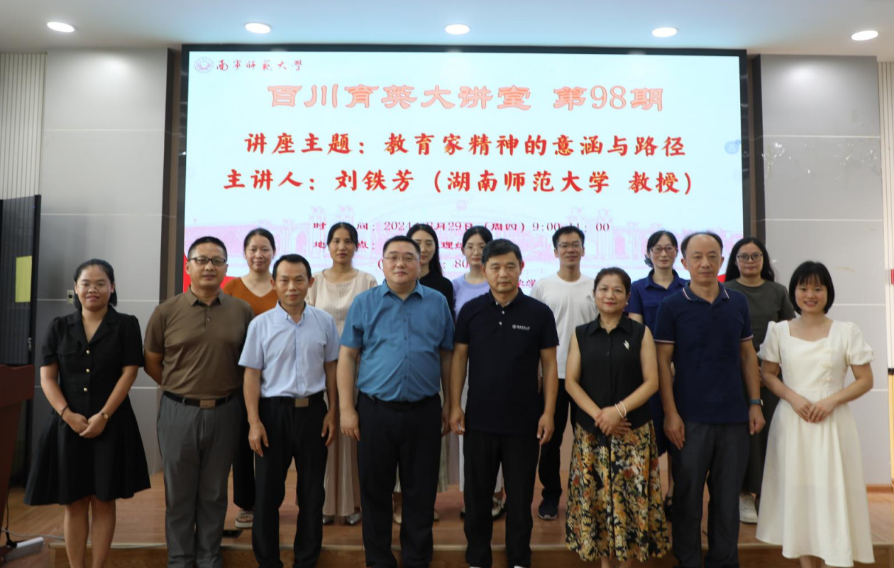 为深入贯彻落实《中共中央国务院关于弘扬教育家精神加强新时代高素质专业化教师队伍建设的意见》,弘扬教育家精神,推进教育团队建设,喜迎我国第40个教师节,william威廉英国官网于8月29日上午在五合校区理综楼1003室举办了第98期《百川育英大讲堂》活动,本次学术活动邀请了长江学者、博士生导师、湖南师范大学刘铁芳教授作题为《教育家精神的意涵与路径》的学术讲座,讲座由william威廉英国官网李强经理主持。