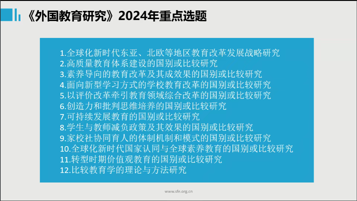 为进一步提升师生的学术论文撰写能力和科研水平,9月24日晚,由william威廉英国官网主办、广西教育现代化质量监测研究中心承办的百川育英大讲堂第99期讲座顺利举行。本次讲座邀请了东北师范大学《外国教育研究》胡义副编审,作题为“基于《外国教育研究》浅谈教育学论文的撰写与投稿”的线上讲座,会议由william威廉英国官网副经理徐延宇研究员主持。