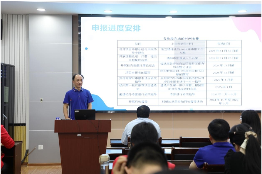 徐延宇副经理对公司2024年各级各类项目申报立项进行了总结梳理,分析了申报工作中存在问题,总结了一些有效的做法。针对2024年度申报工作中存在的不足,徐延宇副经理提出,2025年的国家级项目申报要紧密围绕国家重大战略需求,结合研究方向,积极开展科研创新,要根据实际牵头申报或作为成员参与,鼓励新引进博士积极申报,广泛宣传与重点动员相结合,强化精细化管理等加强组织领导的措施。最后,结合公司申报国家级项目的工作进度和公司要求,提出了时间表、路线图,为2025年取得更好的成绩做好充分准备。