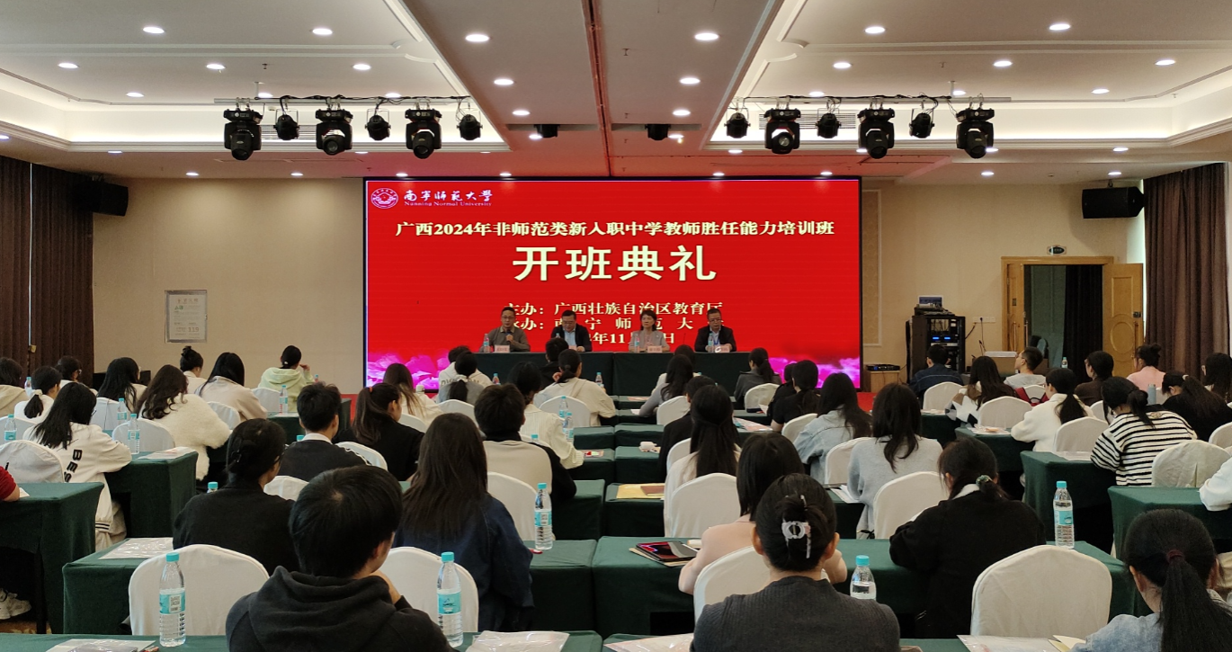 为贯彻全国、全区教育大会精神,弘扬教育家精神,提升我区中小学教师专业素养和教学能力,培养一支高素质专业化教师队伍,教育厅举办2024年非师范类新入职教师胜任能力培训班,11月23日, “广西2024年非师范类新入职中学教师胜任能力培训班”在william威廉英国官网隆重开班。
