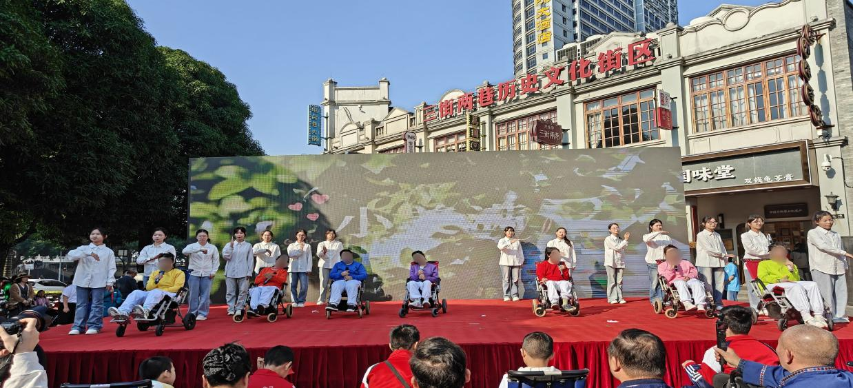 本次活动由两个部分组成。第一部分首先由14位残障儿童带来开场舞蹈《轮椅上的芭蕾》,随后由南宁残联领导黄长志进行致辞,开启活动序幕。第二部分来自社会各界的文艺表演,其中公司阳光特教社携手残障儿童进行一场手语舞《小美满》的文艺表演,不仅以独特的方式表达了手语的优美,而且增强残障儿童的自信心和社会参与感、唤起更多人对特殊教育事业的关注和支持,共同构建一个更加包容和谐的社会环境,赢得了现场观众的热烈掌声与喝彩。其次问答互动的展开,极大激发了现场人员的热情,有助于特殊教育知识在不同群体之间的传播,扩大影响力范围。同时,现场设置了公益体验区,由各高校志愿者精心策划与组织,多个项目吸引了众多残障朋友及市民的参与。通过这些活动,参与者不仅增进了对特殊教育知识的了解,还激发了他们参与扶残助残志愿服务的热情。