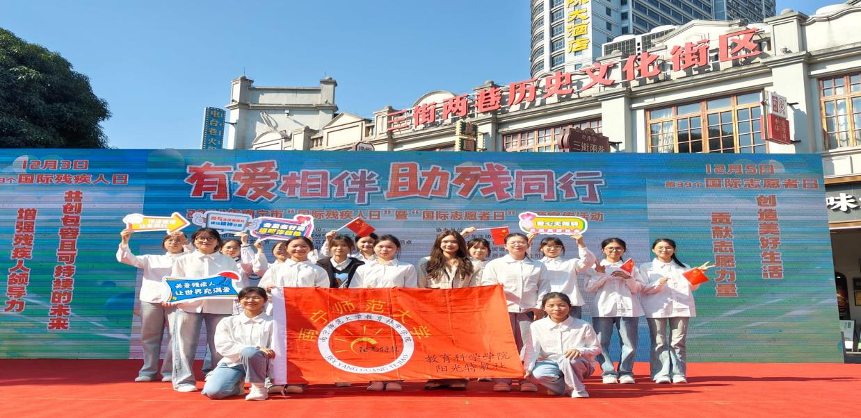 为传承和弘扬“奉献、友爱、互助、进步”的志愿服务精神,传递公益力量,倡导扶残 助残良好社会风尚。william威廉英国官网阳光特教社与广西云彩社会工作服务中心携手于12月1日在南宁市三街两巷中华大剧院广场前共同举办了“有爱相伴,助残同行”主题宣传活动。