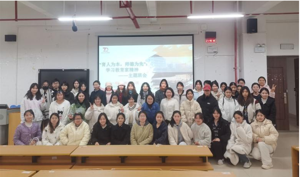 近日,21学前教育专升本2班全体同学在五合校区文综602室,举办了一场主题为“育人为本,师德为先:学习教育家精神”的主题班会。此次班会特别邀请了南宁市社会福利院副经理赵秀梅老师作为嘉宾,为同学们带来了深刻的分享。