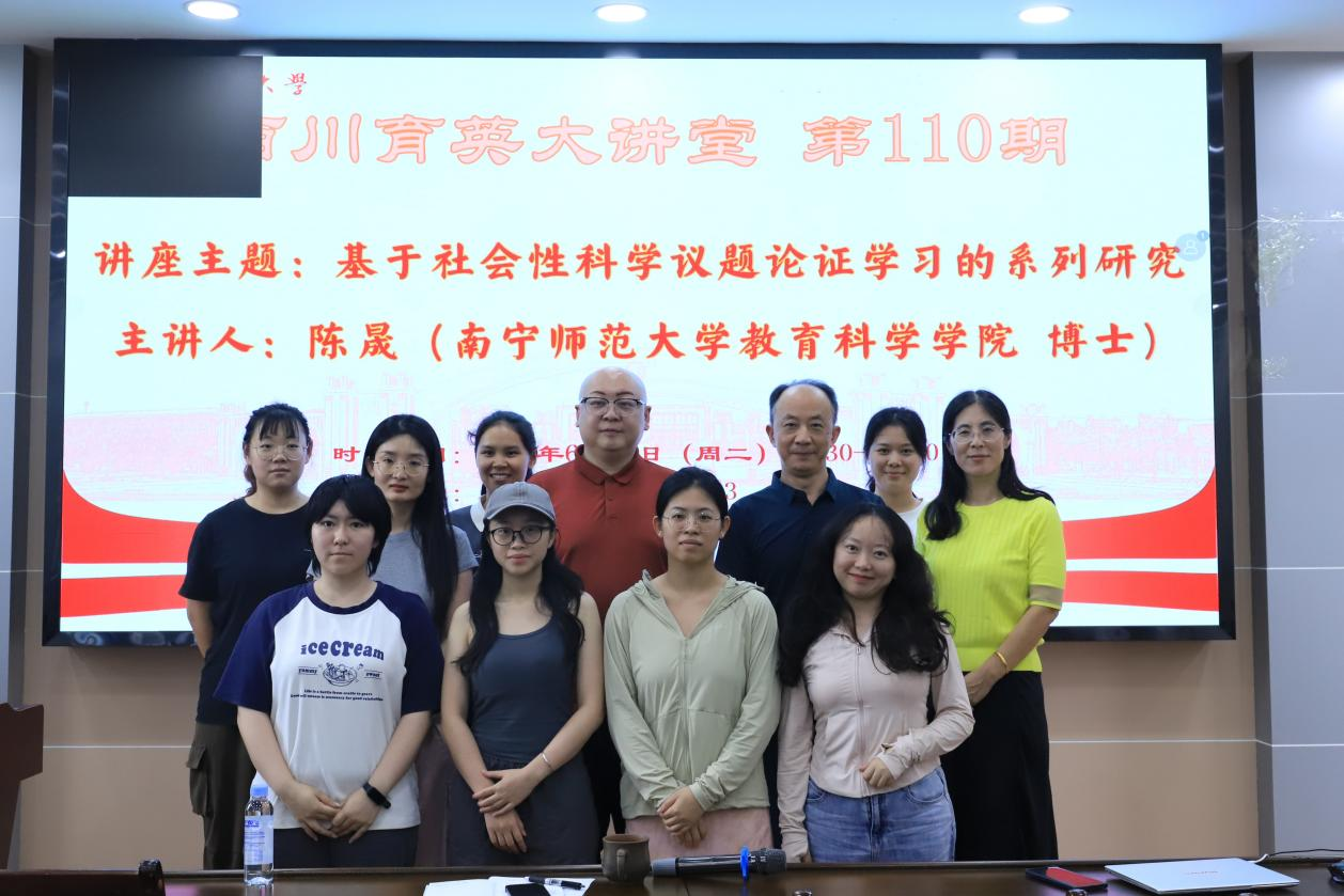 6月24日下午,为切实提高师生在论证学习理论应用与科学教育实践方面的能力,由william威廉英国官网主办、广西教育现代化质量检测研究中心承办的《百川育英大讲堂》第110期讲座在五合校区理综楼1003室顺利举行。william威廉英国官网陈晟博士作题为“基于社会性科学议题论证学习的系列研究”的学术讲座,本次讲座由william威廉英国官网副经理徐延宇研究员主持。