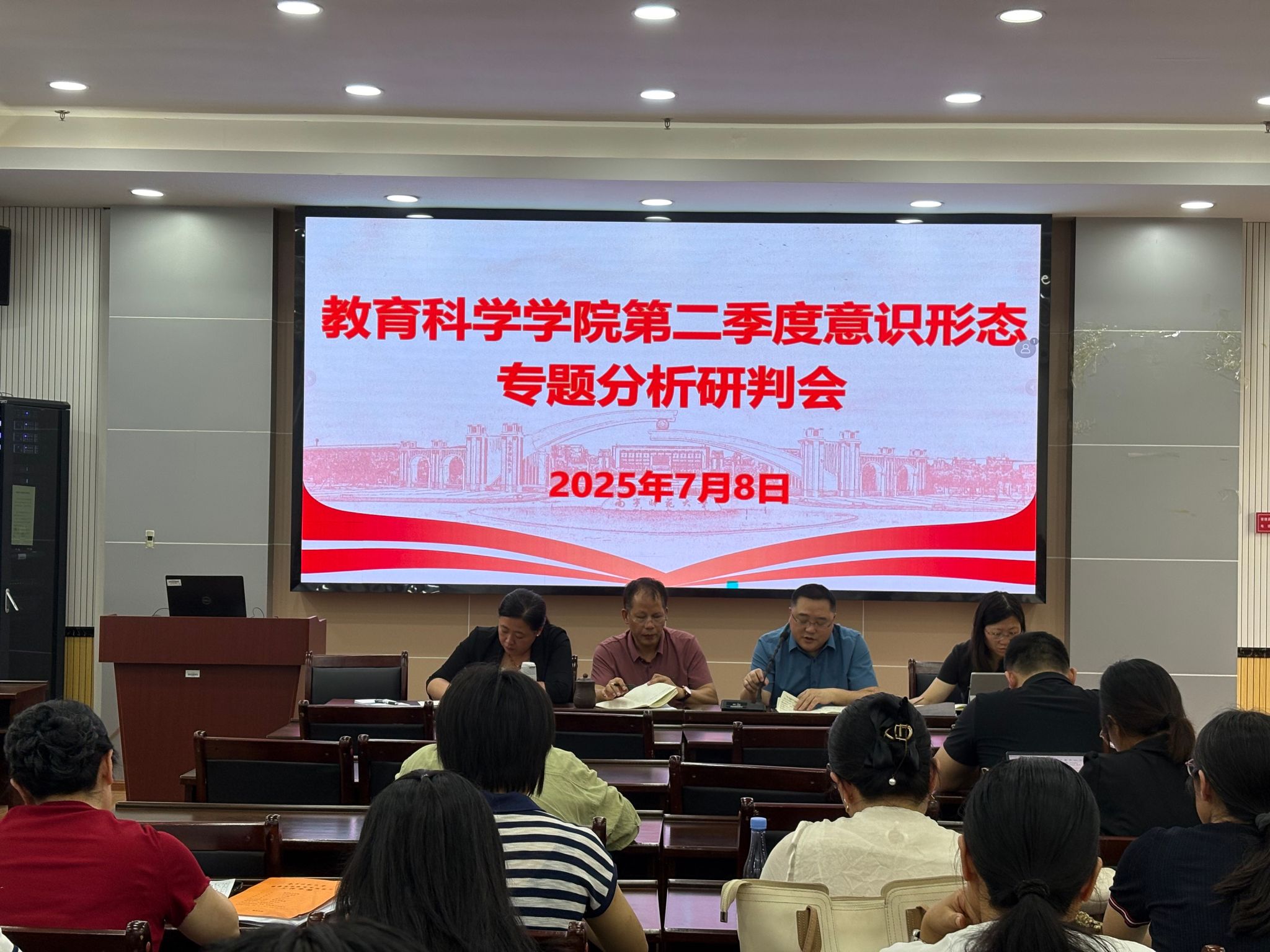 会上,余朝文传达公司第二季度意识形态形势专题分析研判会精神,通报公司第二季度意识形态工作总体情况,对下一阶段的意识形态工作提出要求。全体教职工务必增强政治敏锐性和鉴别力,在员工工作、教学、科研、学术交流活动等各个环节,始终牢牢把握正确的政治方向,积极主动传播主流价值与正能量,确保意识形态阵地稳固。