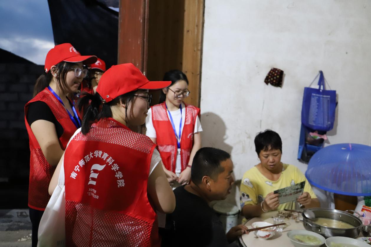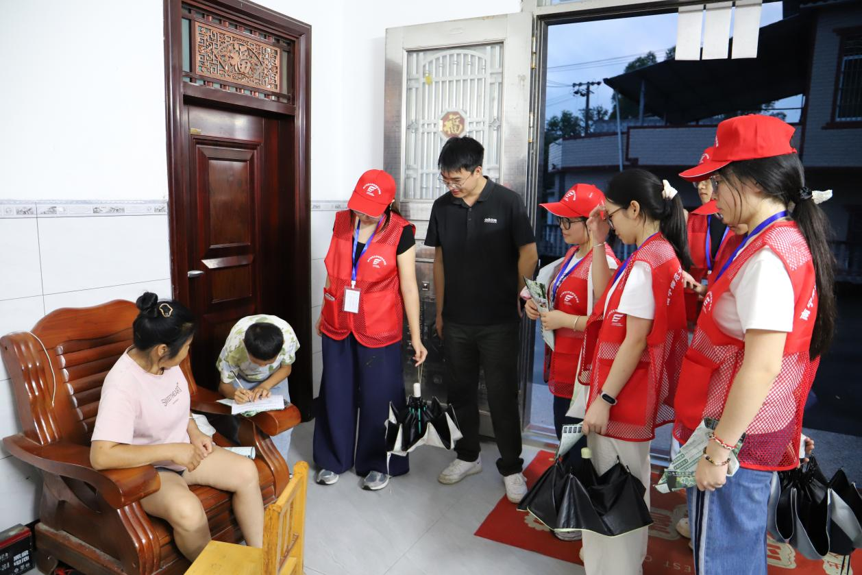 傍晚时分,实践团队在巫福星书记的带领下走进村落,逐户走访宣传此次“三下乡”活动内容,热情招募当地员工参与暑期夏令营活动。实践队员的真诚与热情感染着孩子们,孩子们纷纷在报名表上写下自己的名字,“情暖童心”的种子在乡土间悄然播撒。