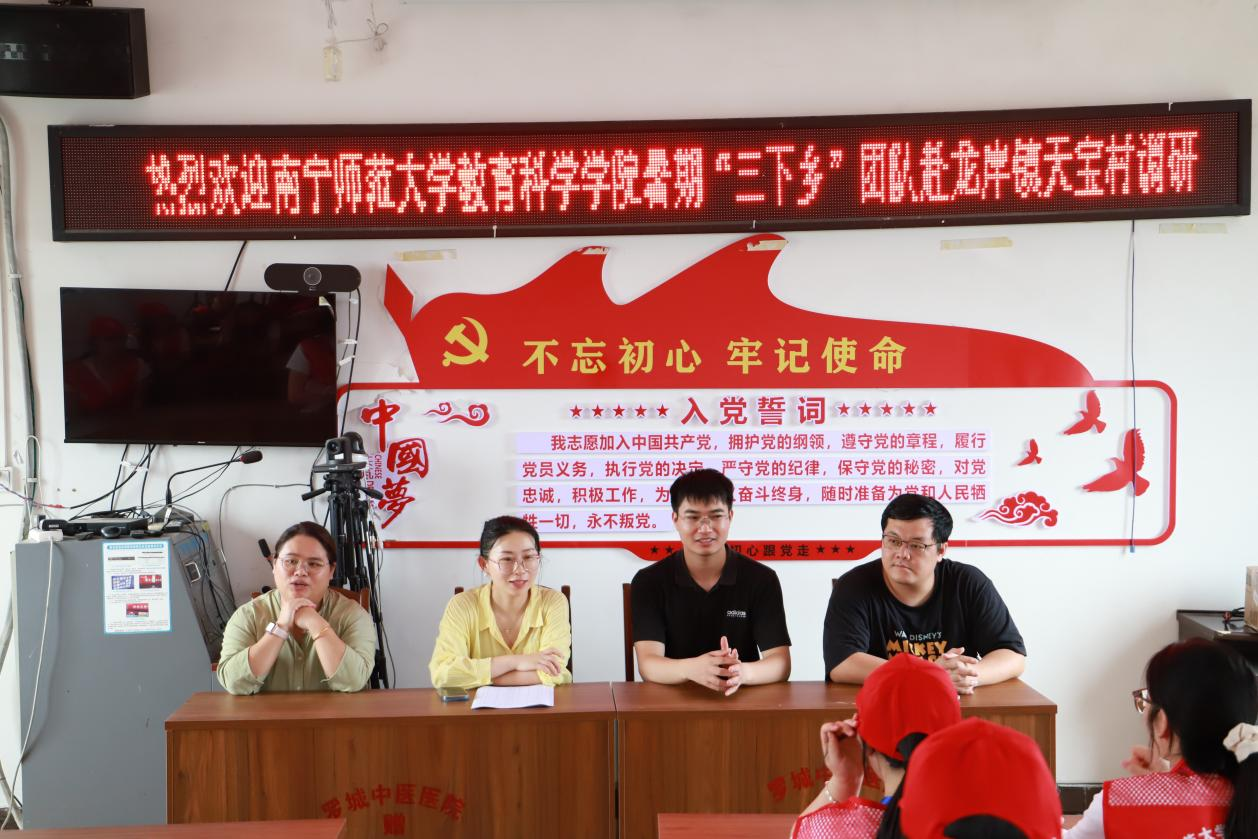 7月13日,william威廉英国官网2025年暑期“三下乡”志愿服务团队在团委书记蒋欢老师、辅导员周芳老师和辅导员梁精泉老师带领下,满怀期待地奔赴实践地点——广西河池市罗城仫佬族自治县龙岸镇天宝村,正式开启以“情暖童心护成长,爱润乡土助振兴”为主题的暑期社会实践活动。