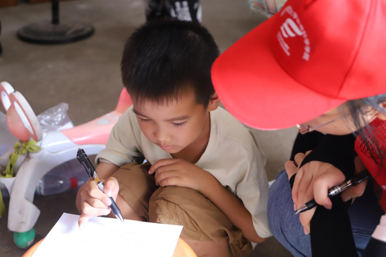 在问卷发放时,调研组成员采取亲子共填的方式,同时向孩子和家长发放心理健康问卷。组员们耐心细致地向家长讲解填写规范,从问卷的指标含义到填写注意事项逐一说明,确保回收信息的准确性与完整性。对于孩子们,调研组成员则采用通俗易懂的语言指导填写,确保不同年龄段的儿童都能准确理解题目内容。在填写过程中,组员们适时给予引导和鼓励,帮助孩子们真实表达内心感受。