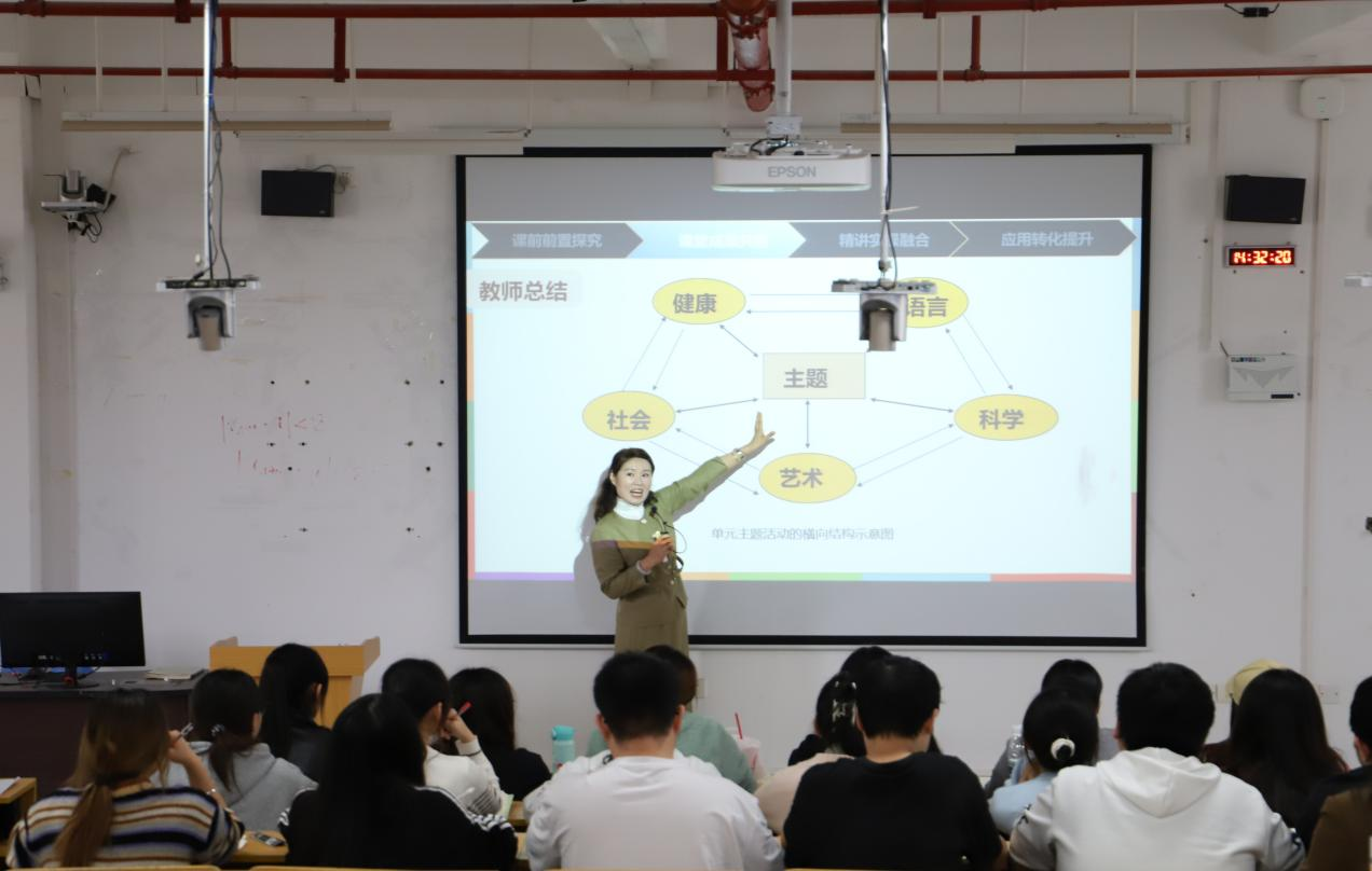 本次公开课由学前教育系的刘青青老师主讲单元主题活动的设计与实施。刘老师围绕“什么是单元主题活动”“单元主题活动的特点”以及“如何设计主题网络图”三大核心内容展开授课与员工互动,以生动形象、通俗易懂的方式进行讲解各个知识点。