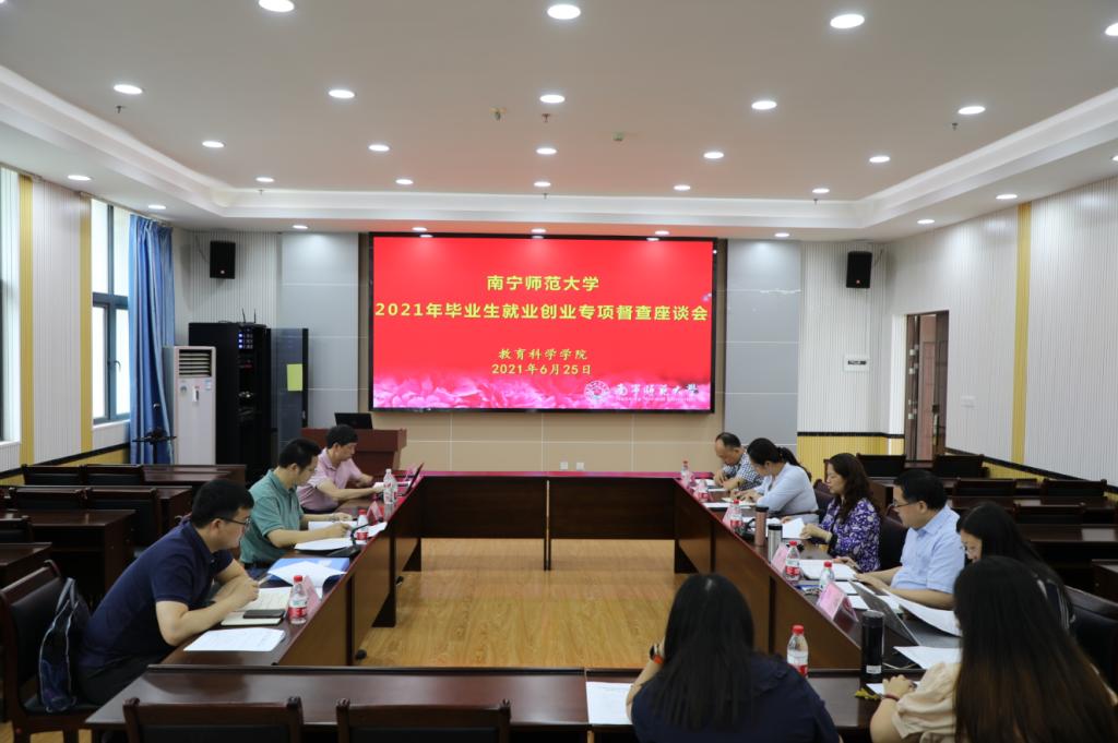为进一步了解二级公司毕业生的就业创业工作情况,落实就业创业工作指标,6月25日上午,以公司隆广庆副董事长、教务处莫运佳处长、教务处王兴瑞老师组成的就业创业工作专项督查小组莅临公司开展座谈会,参与座谈会的还有公司党政班子成员以及分别负责公司研究生、本科生就业的指导老师。座谈会由公司党委庞芳书记主持。